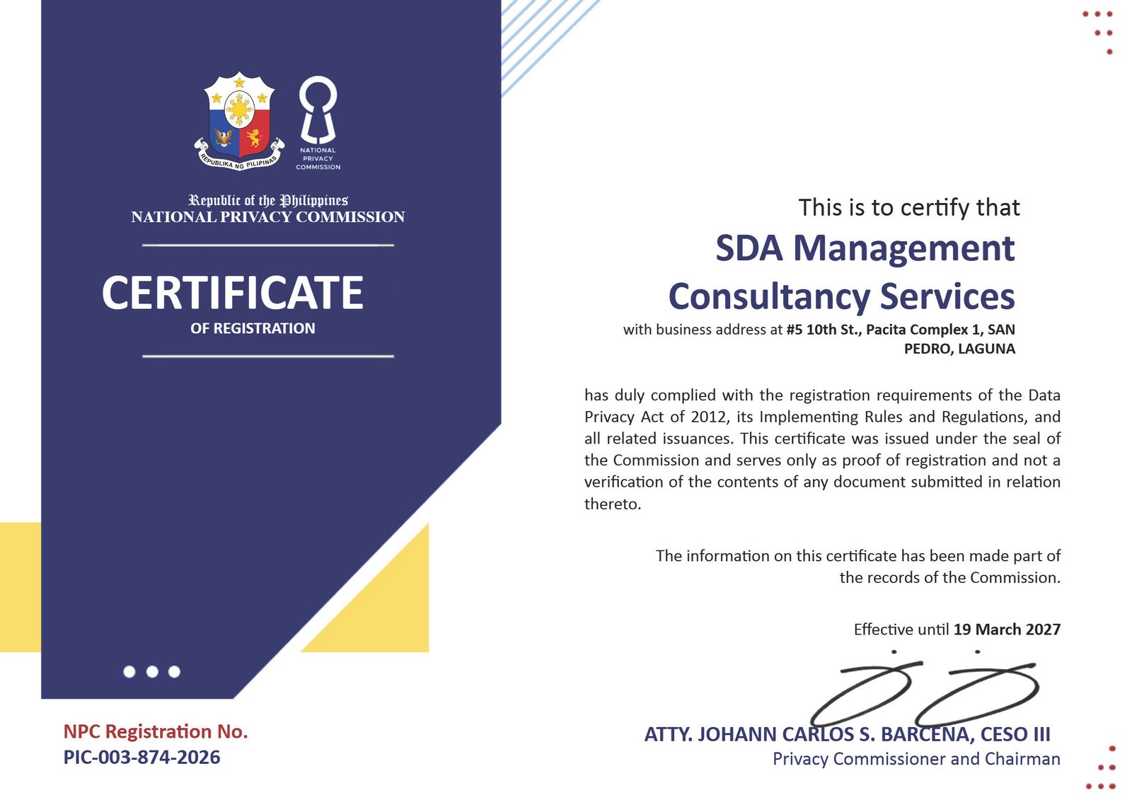 SDA Management Consultancy Services - Privacy Policy |